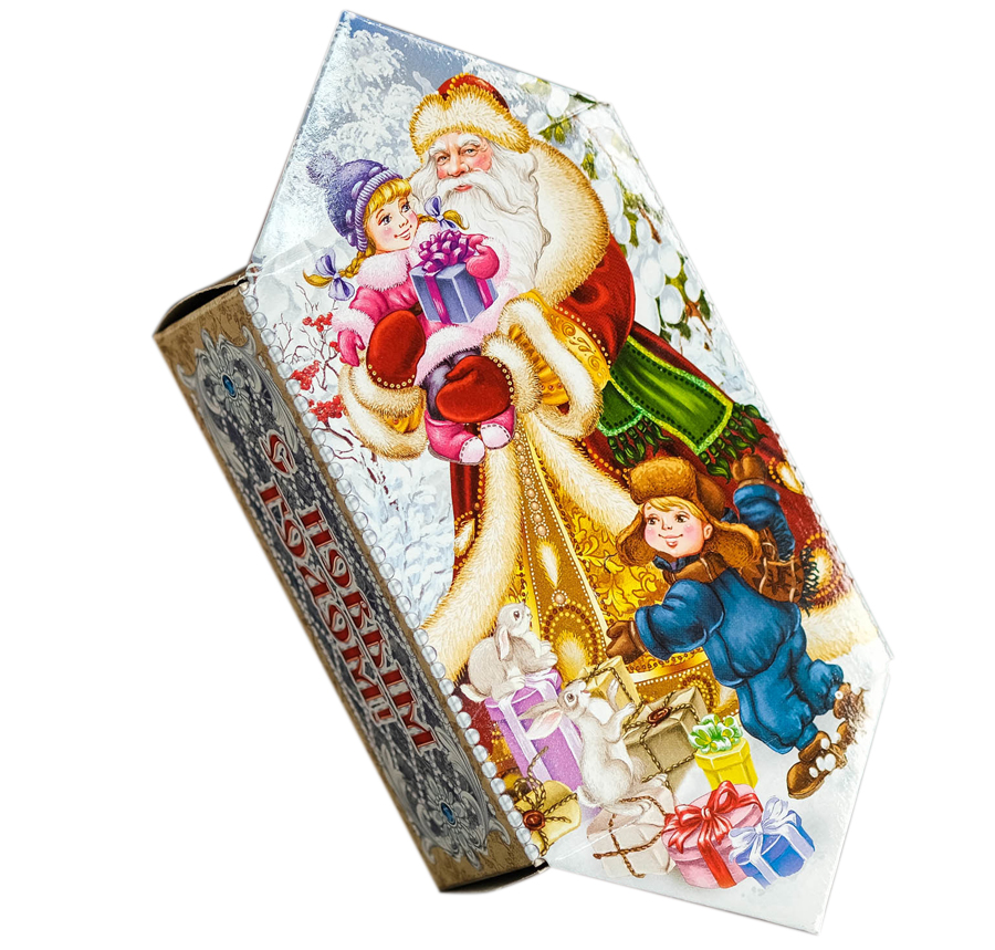 Подарочная коробка "Дед Мороз", конфета малая, с игрой, 9*5,8*12,8 см