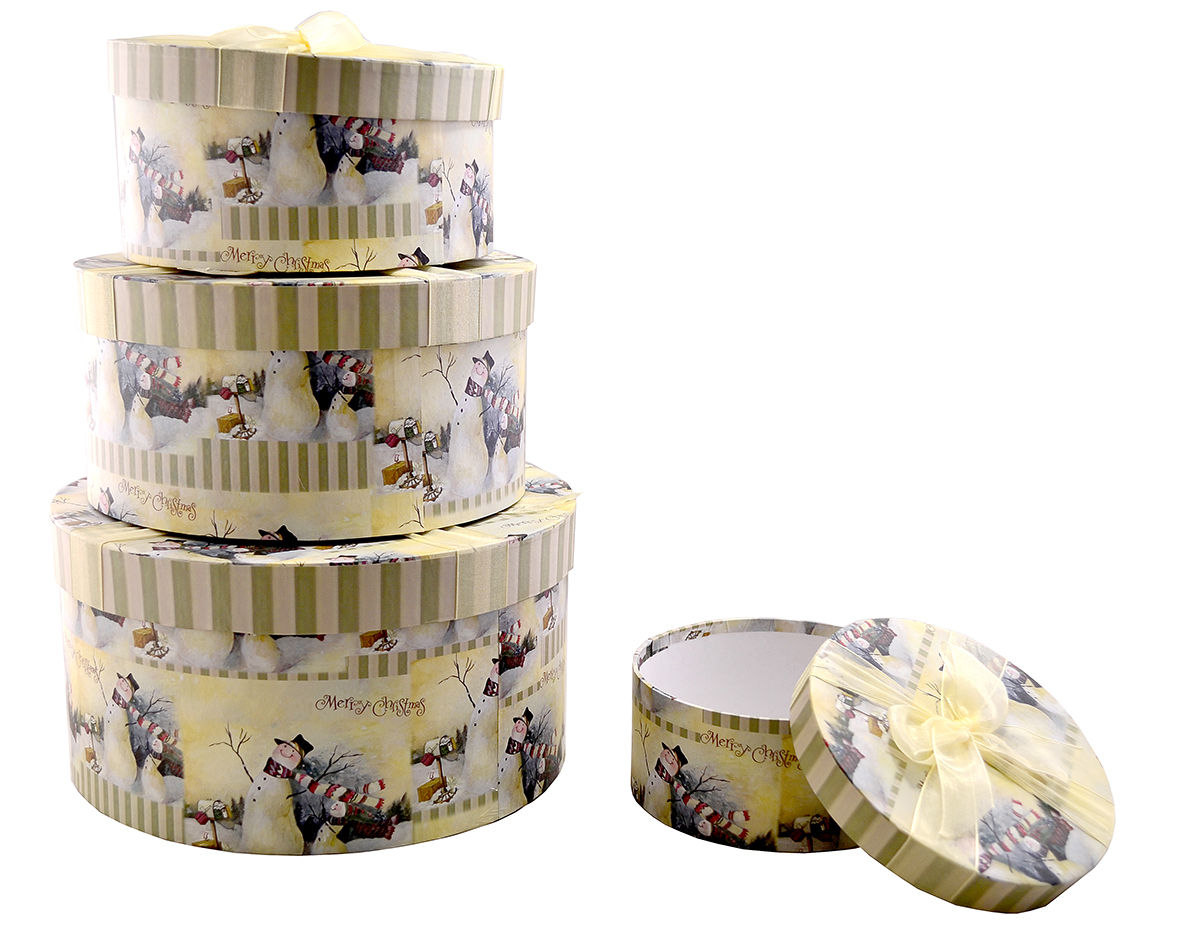 Картонные подарочные коробки — очень удобный способ упаковки подарков. Декоративные коробки могут стать достойным дополнением любого интерьера и прекрасно подходят для хранения мелочей. В набор входят четыре круглых коробки разного размера.