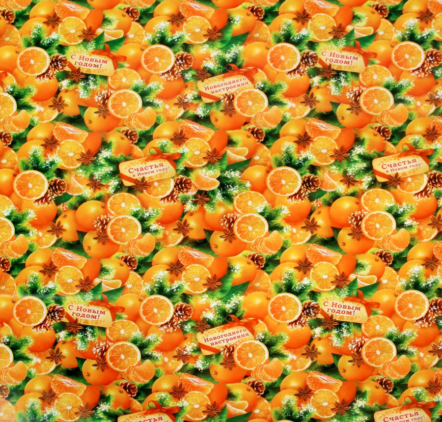 Бумага упаковочная "Мандарины" глянцевая, 70*100 см