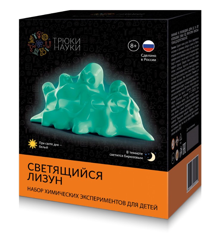 Все нужные ингредиенты уже есть в комплекте, так что опыт доставит только приятные эмоции. Провести его могут даже дети под контролем взрослых. Хороший результат гарантирован! Материалов в наборе хватит на производство несколько лизунов, которых можно дарить друзьям и родным. Научный набор станет хорошим развивающим подарком для ребенка, приносящим не только радость, но и пользу.