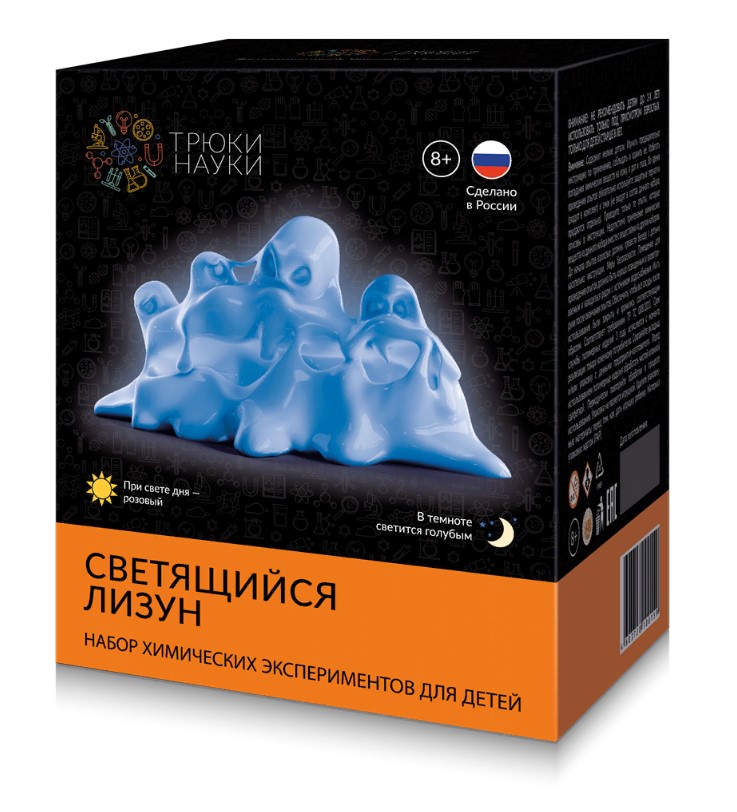 Сделайте своими руками волшебного лизуна, который будет менять цвет в зависимости от освещения. Днем он розовый, а ночью светится голубым сиянием! С этим набором для проведения экспериментов вы узнаете, как придать пластичному веществу удивительные свойства и проведете целую серию увлекательных опытов для друзей, родных и близких.