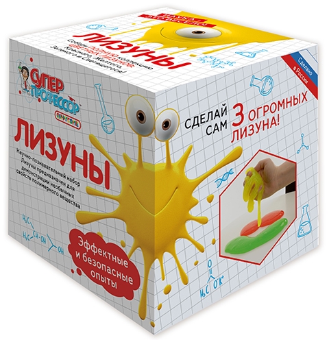В наборе уже есть все необходимые ингредиенты для создания лизуна. Подробная инструкция на русском языке расскажет, как правильно провести эксперимент. Ребенок почувствует себя настоящим ученым, создающим в лаборатории необычное вещество. Набор прививает интерес к науке и познанию мира.