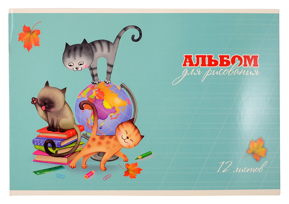Альбом для рисования А4 12 листов "Котята и глобус"