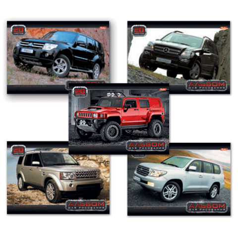 Приобрести альбом для рисования «Внедорожники» можно у нас. Он придется по душе мальчикам, которые любят автомобильную тематику, и поможет ребенку раскрыть свои таланты.