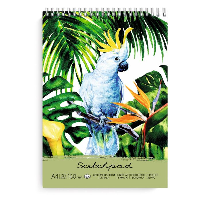 Альбом для пастели А4, 30 листов "Попугай", бежевая бумага, на евроспирали