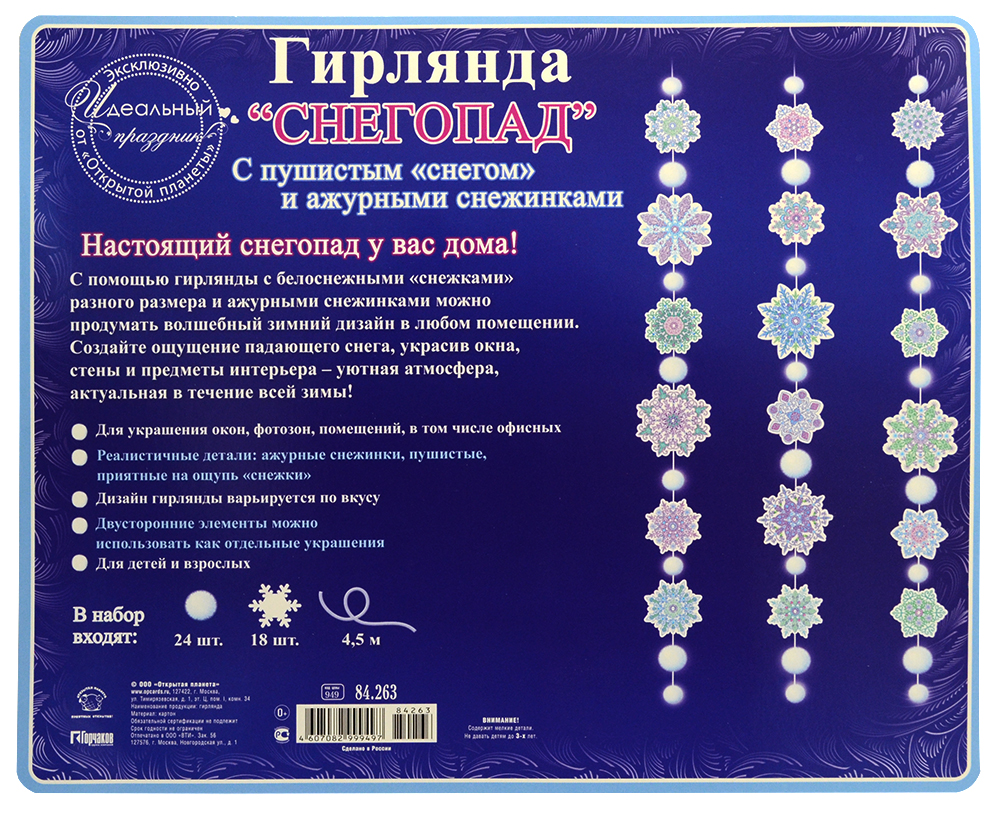 - В наборе: снежинки, снежки, нить, инструкция