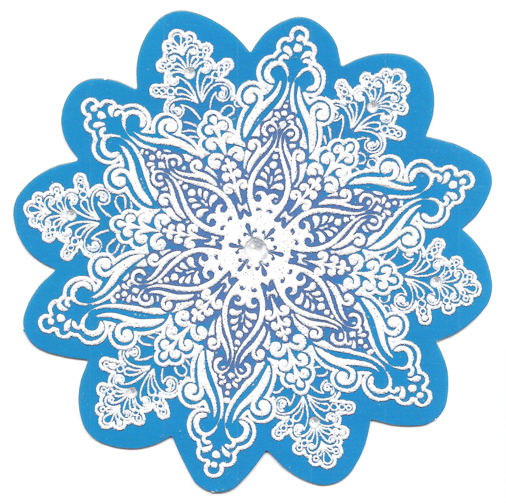 Снежинка сделана из картона и имеет яркий стильный дизайн.
