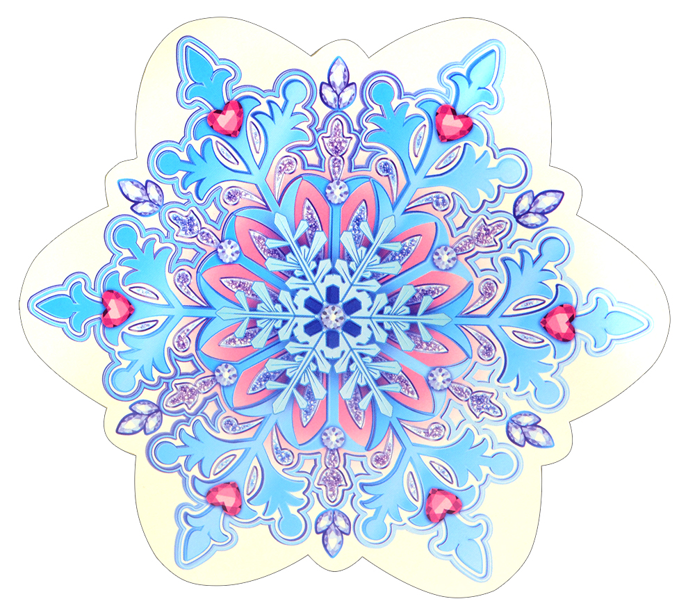 Снежинка сделана из картона и имеет яркий стильный дизайн.