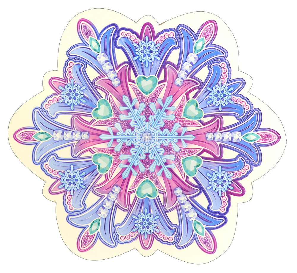 Снежинка сделана из картона и имеет яркий стильный дизайн.
