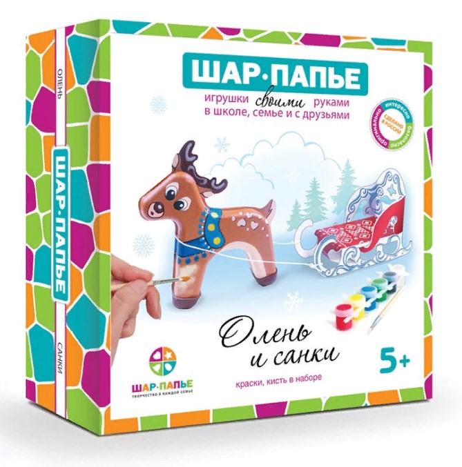 - В наборе: заготовка для игрушки, заготовка для саней, краски 6 цветов, кисть, фурнитура