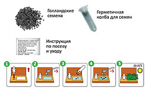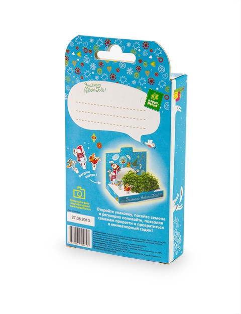 - В наборе: открытка-коробочка, фигурки для украшения сада, герметичная колба с семенами (производство Голландия), контейнер для газона, специальный материал для проращивания
