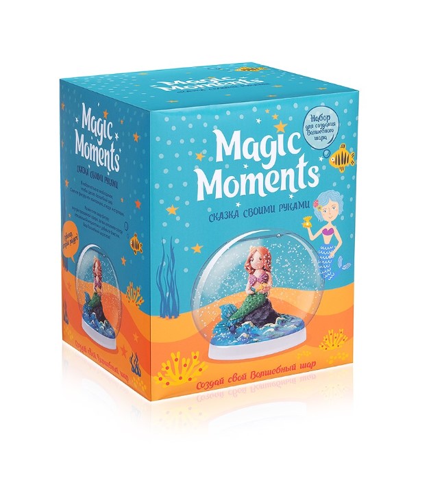 Новый набор Magic Moments знакомит детей с классическими сказочными сюжетами. Создайте внутри прозрачного шара удивительный подводный мир и поселите туда русалочку. Потрясите шар и наблюдайте за медленным танцем серебристых блесток. Сувенир завораживает своей красотой, а сделать его может даже новичок!