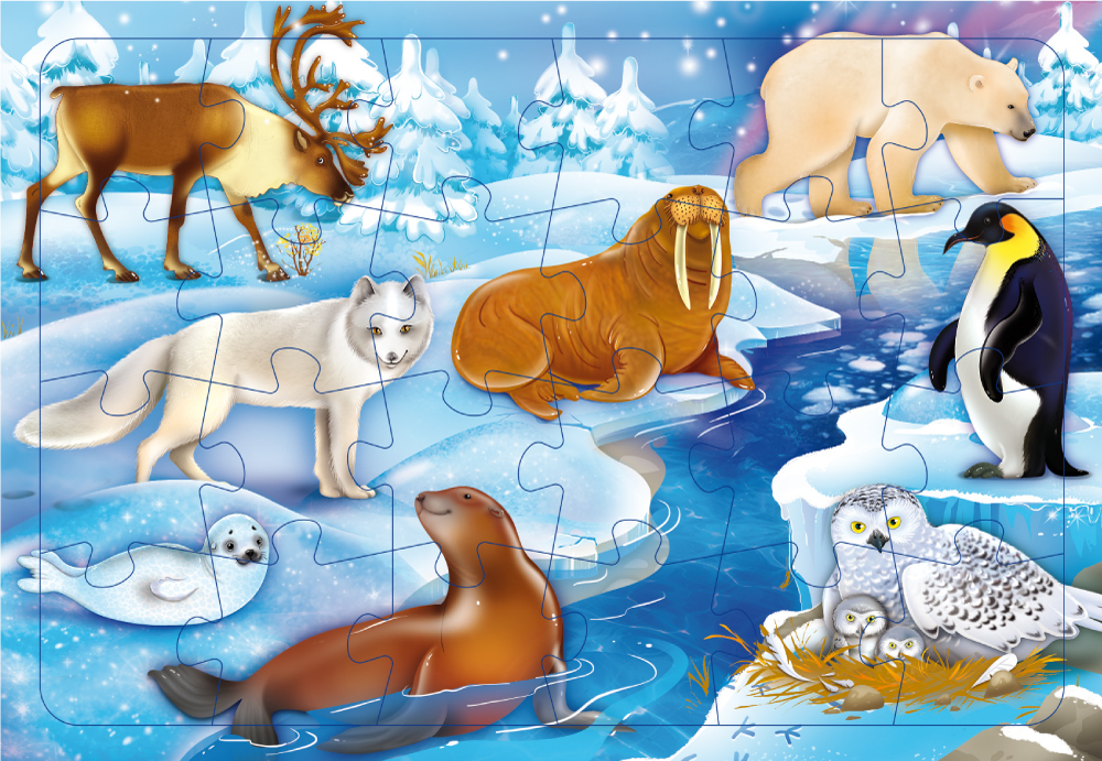 Пазл листовой на подложке "В снегах" 24 детали*