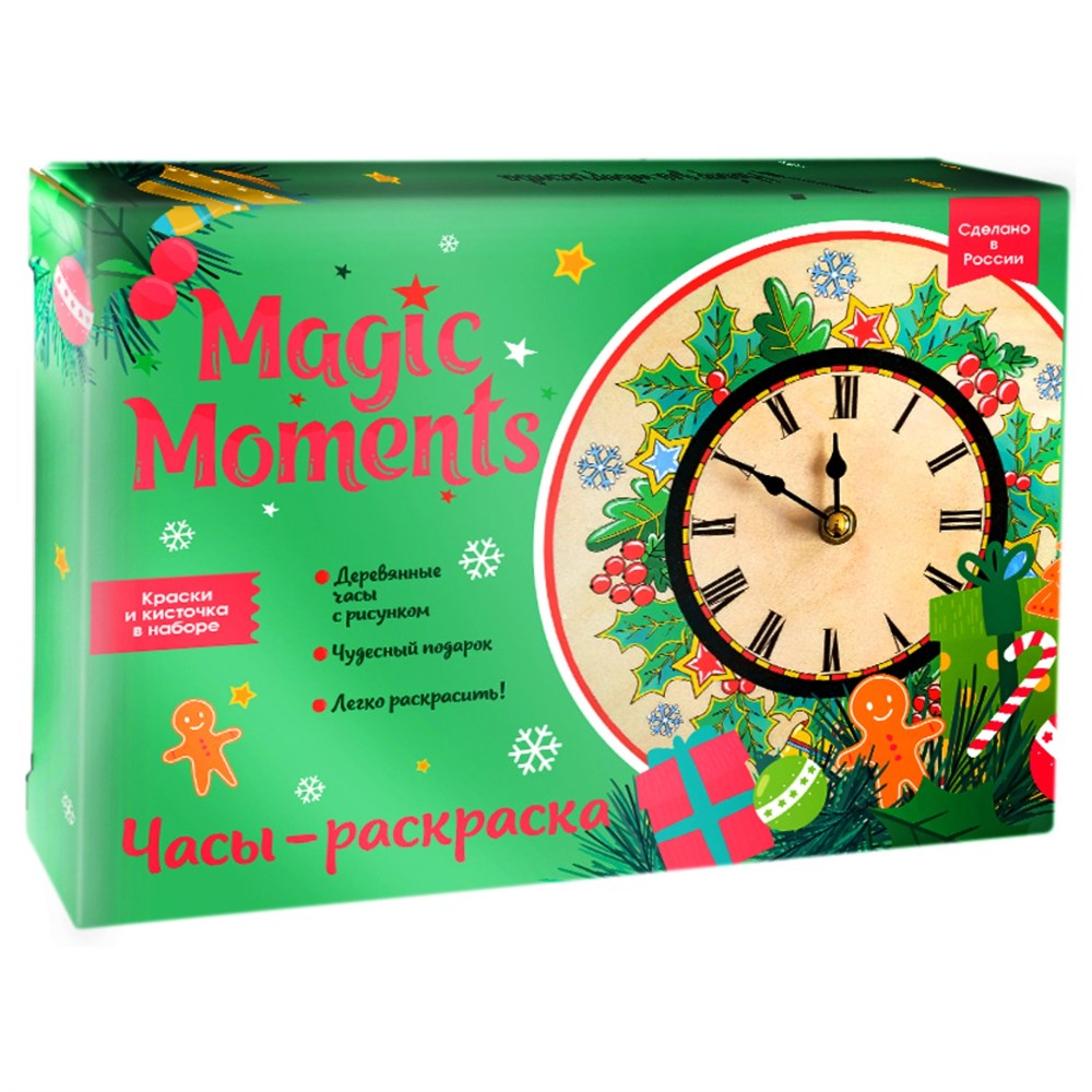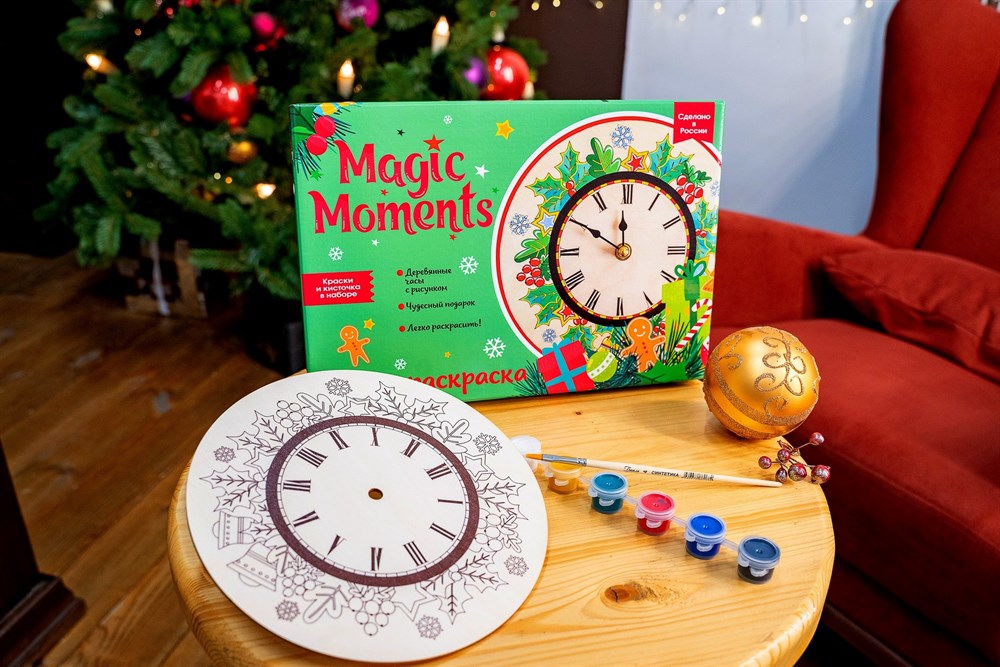 Придумайте чудесный новогодний рисунок и воплотите свои праздничные идеи в жизнь вместе с часами-раскраской от бренда Magic moments! На качественно шлифованную деревянную заготовку нанесен праздничный контурный рисунок. Раскрасьте его на свой вкус, дополните деталями, и в результате у вас получится великолепный интерьерный аксессуар в новогоднем стиле. Часовой механизм и стрелки легко фиксируются на заготовке. Дополнительно понадобится приобрести батарейку типа АА (в комплект не входит).