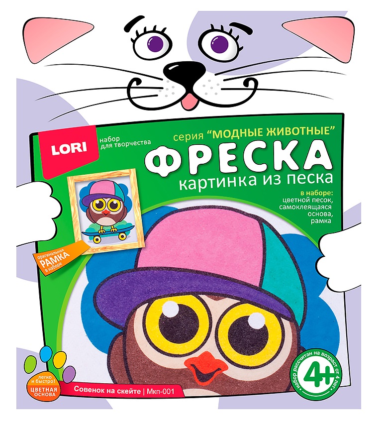 Набор для творчества. Фреска. Картина из песка "Совенок на скейте"