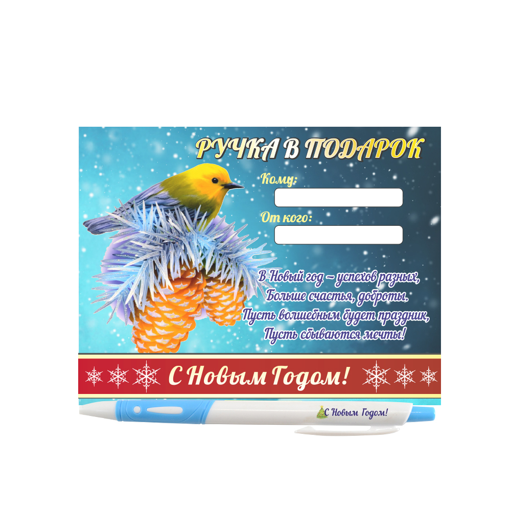 В наборе : открытка со стихами и ручка с надписью "С новым годом!"