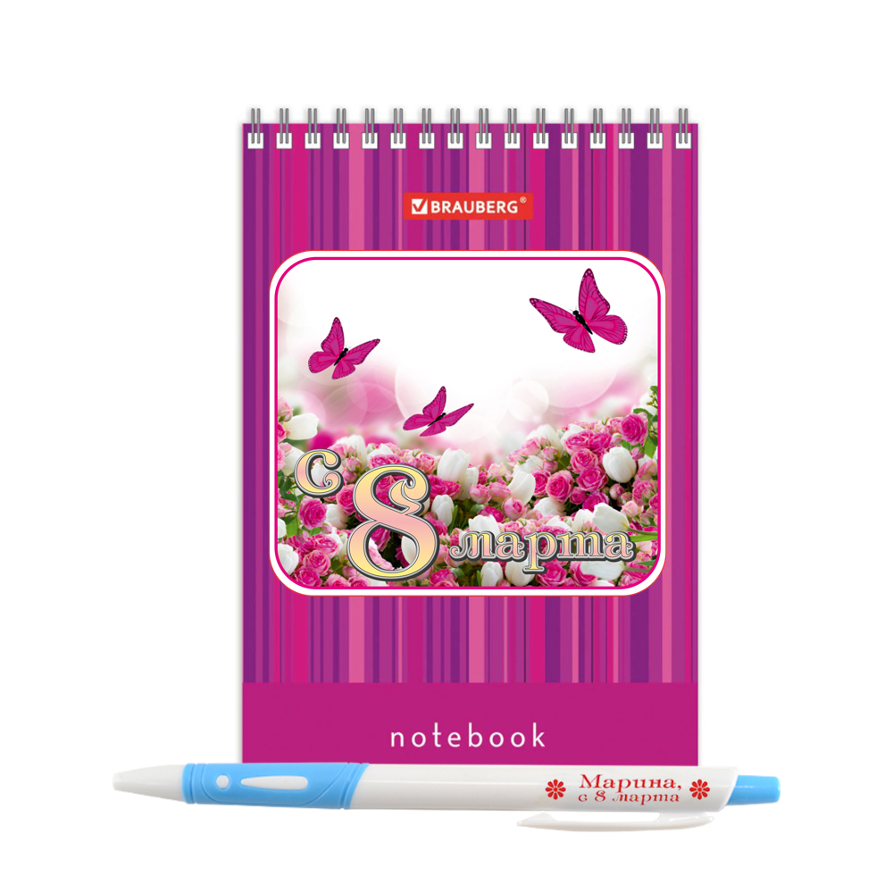 Отличный подарочный набор для девочки на 8 Марта - стильная авторучка с праздничным блокнотом формата А6!