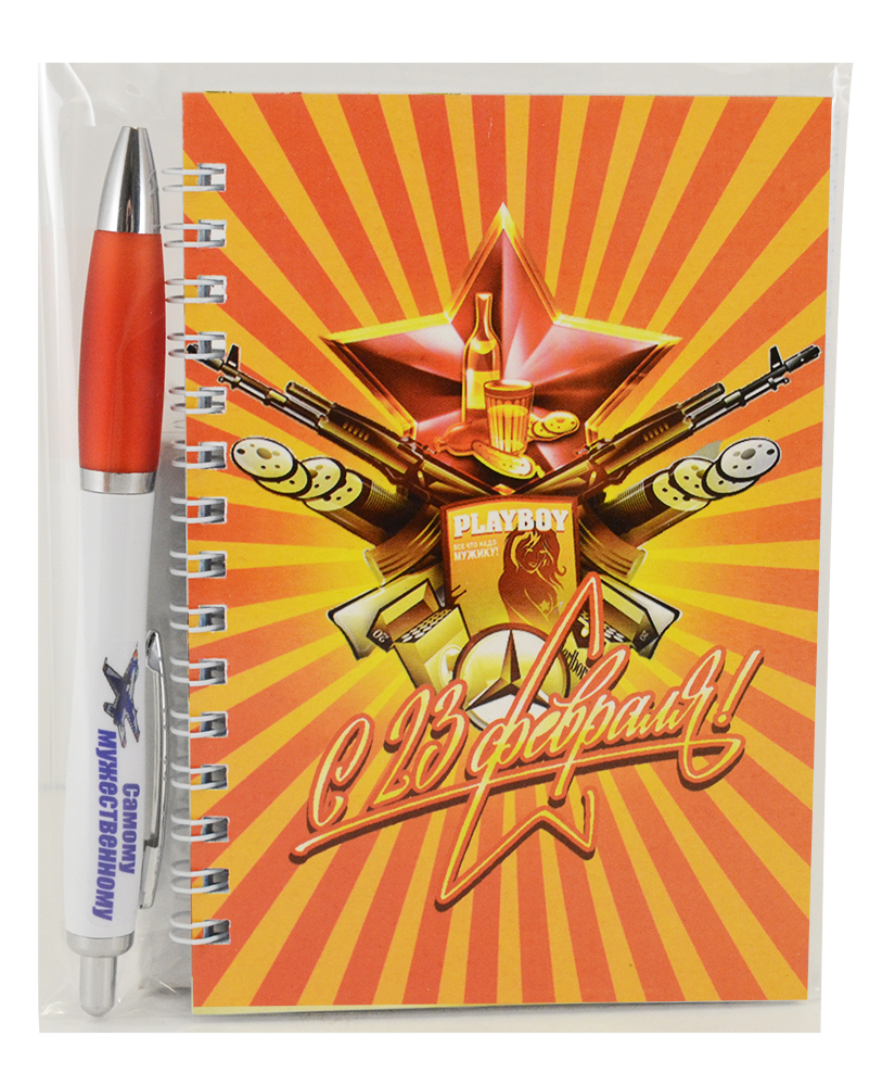 Индивидуальный подарочный набор, блокнот и ручка "С 23 февраля 18+"*