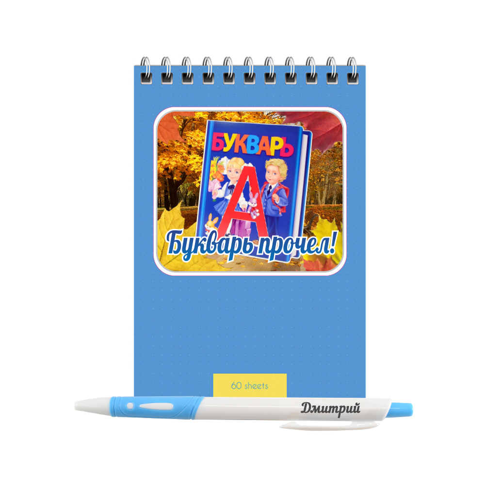 Индивидуальный подарочный набор, блокнот и ручка "Букварь прочел"