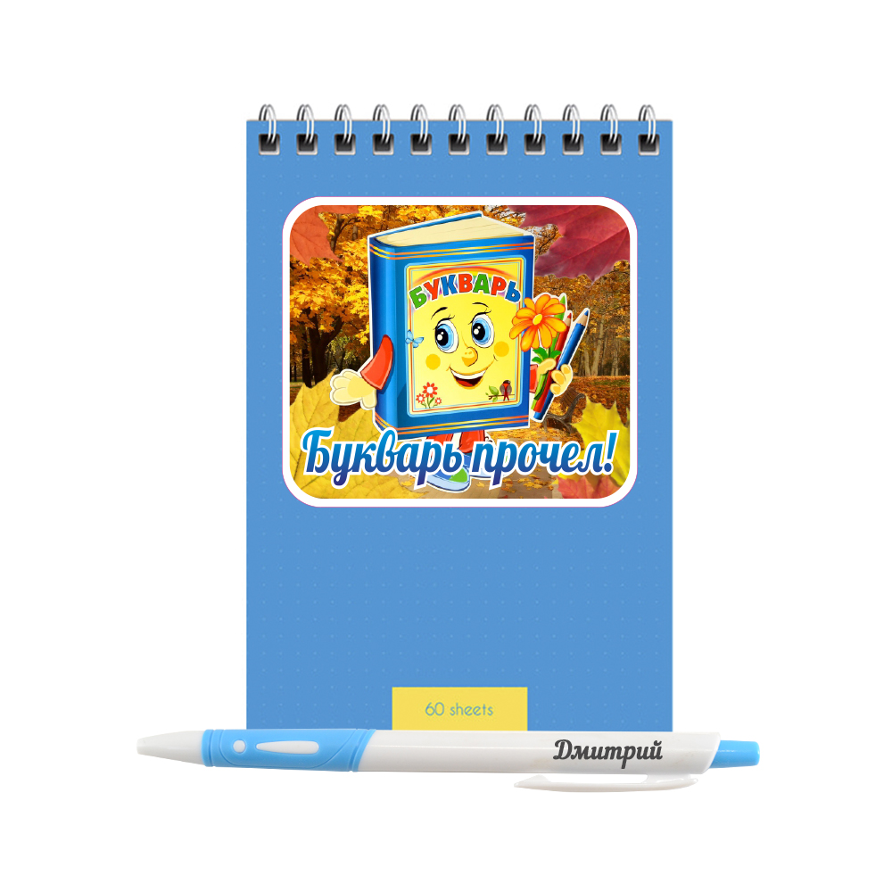 Индивидуальный подарочный набор, блокнот и ручка "Букварь прочел"