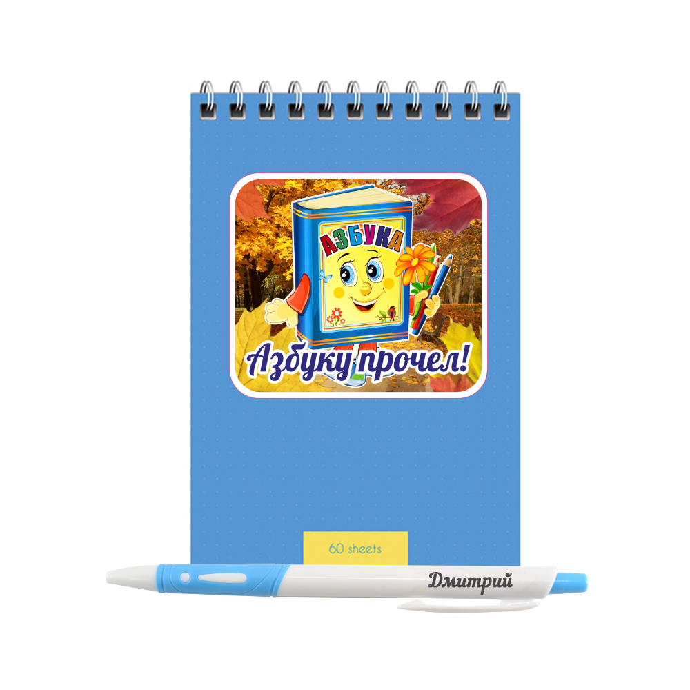 Индивидуальный подарочный набор, блокнот и ручка "Азбуку прочел"