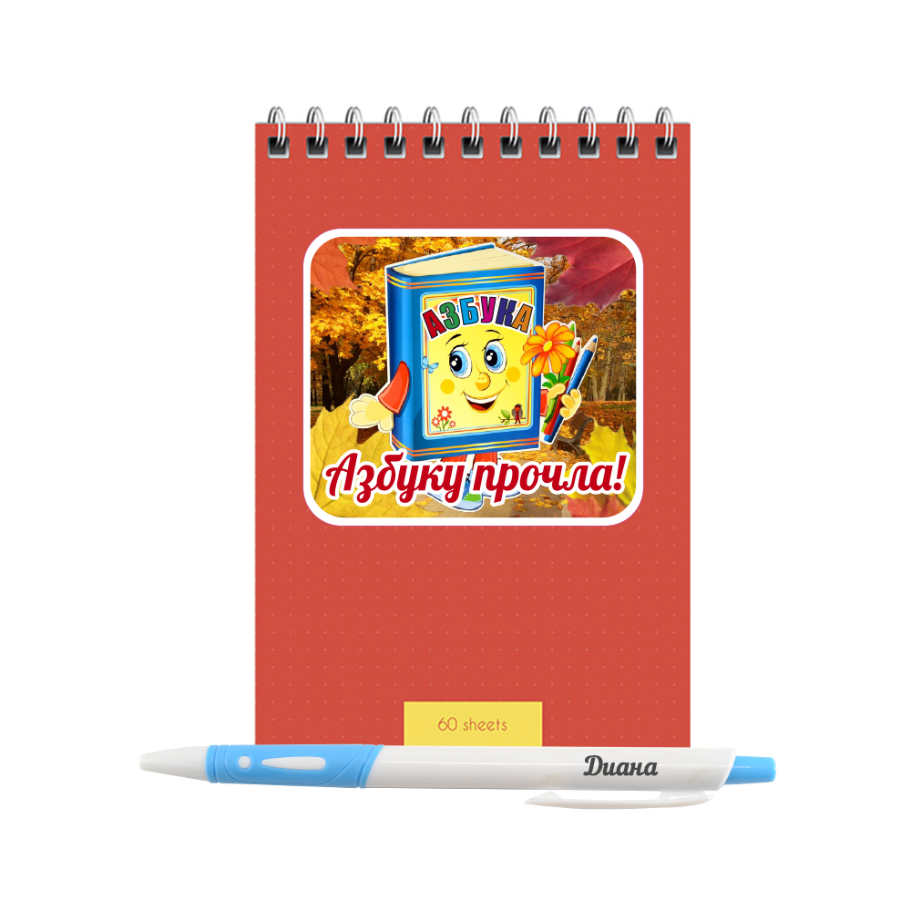 Индивидуальный подарочный набор, блокнот и ручка "Азбуку прочла"