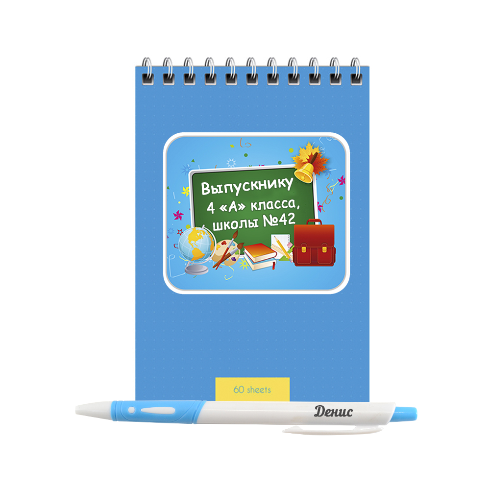 - В наборе : праздничный блокнот и ручка с надписью "Выпускнику"