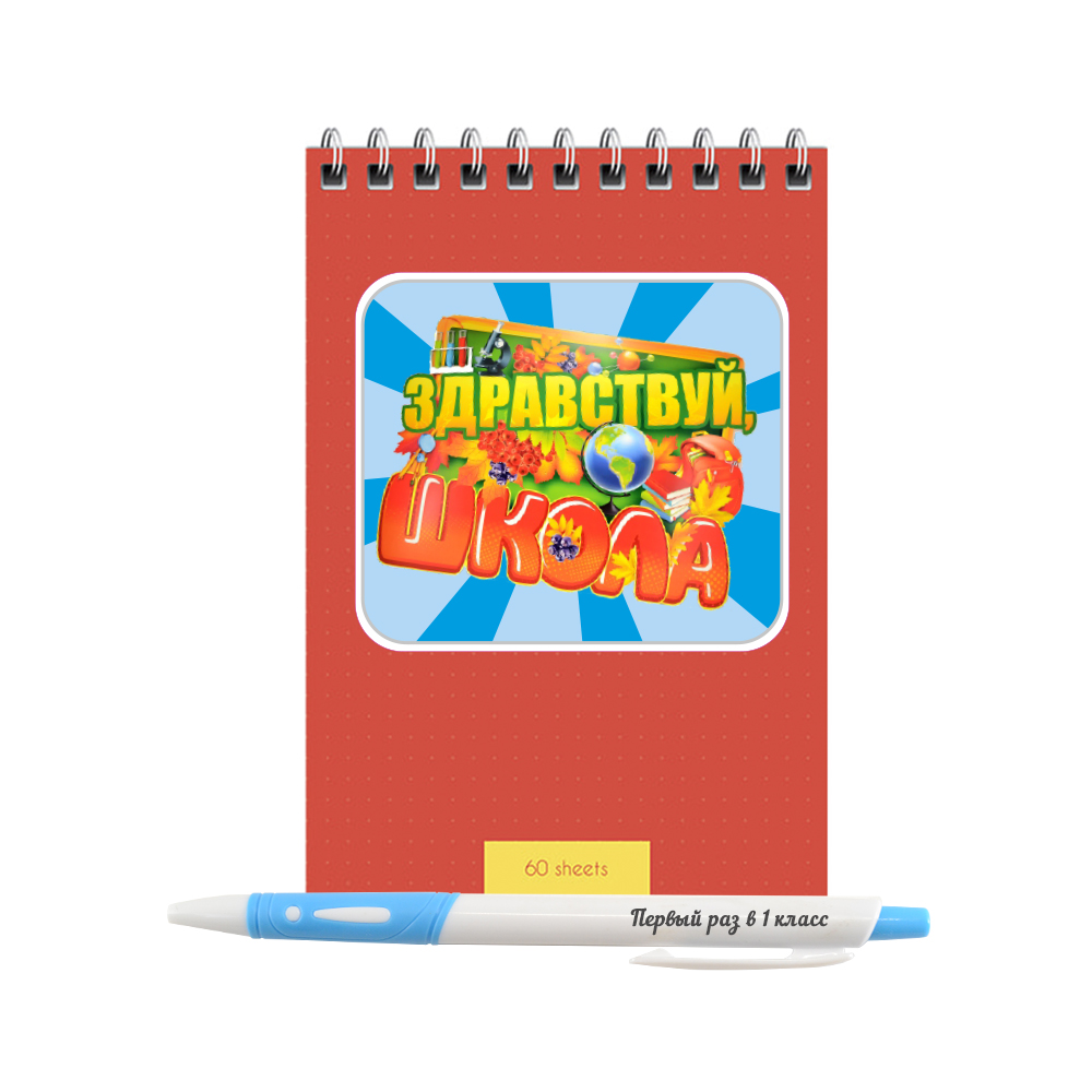 Индивидуальный подарочный набор, блокнот и ручка "Здравствуй школа"