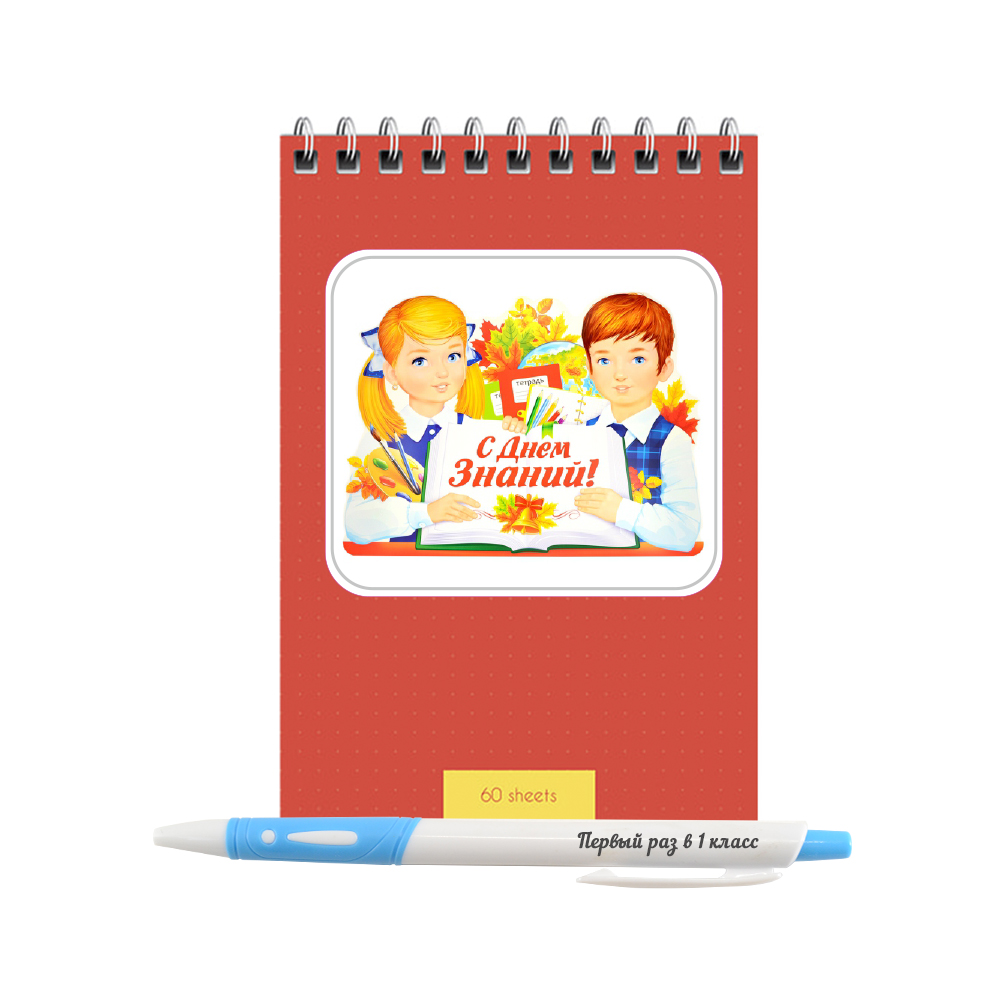 Индивидуальный подарочный набор, блокнот и ручка "С днем знаний, мальчик и девочка"