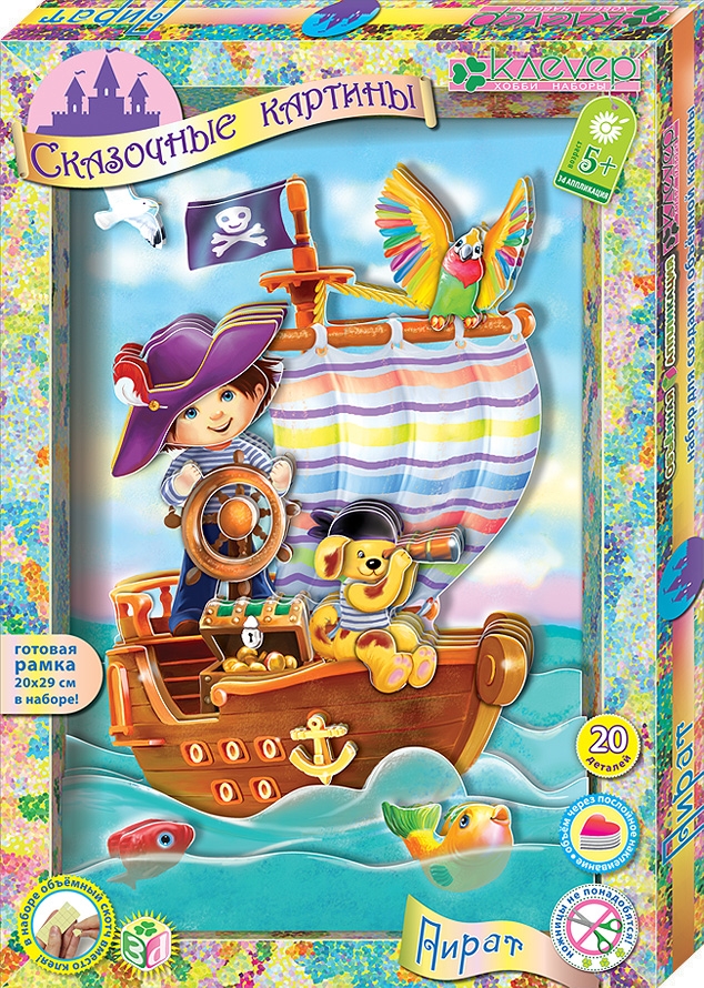 В наборе: готовые бумажные детали, собранная рамка из плотного картона, картонная картинка, двусторонний объёмный скотч, инструкция