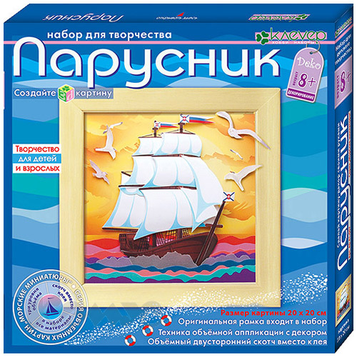 Трудно представить себе что-то более романтическое, чем парусник. Конечно, путешествие по морю само по себе - романтика, но парусник - это вершина романтических мечтаний. Мальчишки грезят парусниками с детства, читая Жюль Верна или Джека Лондона. А когда есть возможность самостоятельно изготовить декоративную картину с изображением парусного судна в технике аппликации - это просто захватывает дух. Набор для изготовления картины "Парусник" поможет быстро и без сложностей создать декоративную картинку в 3D-технике.