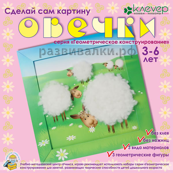 Перед Вами не просто картина-аппликация, а методическое пособие, развивающее способности Вашего ребенка. Работая с набором, Ваш ребенок знакомится с разными по фактуре материалами и с разными геометрическими фигурами. Наклеивая на картинку-шаблон фигуры, ребенок учится достраивать изображения, создавать целое, путем комбинирования различных деталей. Малышу не понадобятся ни клей, ни ножницы.