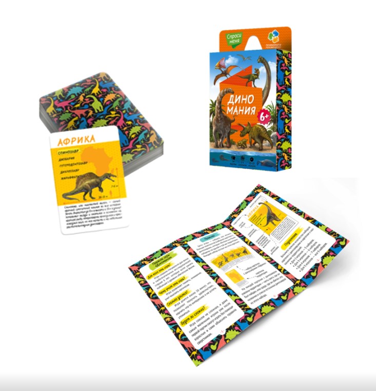 В игре 54 карточки с древними обитателями Земли, разделенными по видам и странам обитания. Правила “Диномании” не сложные, их поймут даже самые маленькие дети и смогут самостоятельно играть без помощи взрослых.