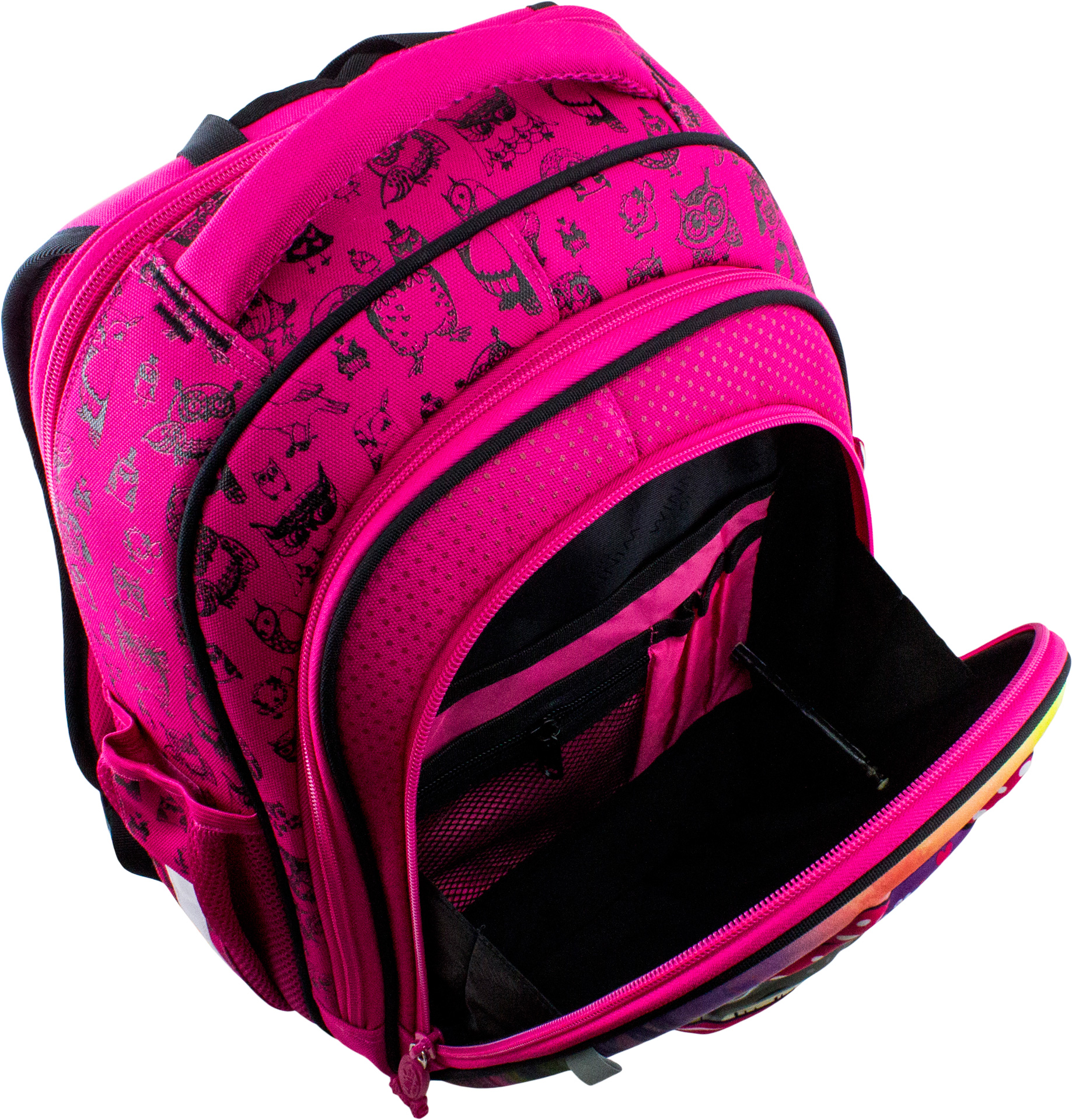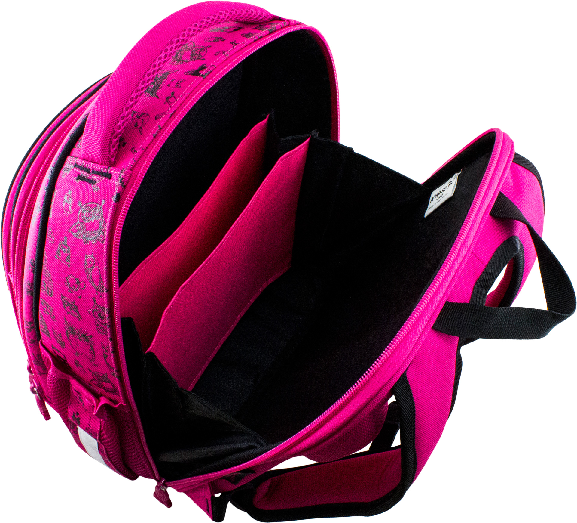 Основное большое отделение у спины, с тканевыми разделителями, для школьных принадлежностей.