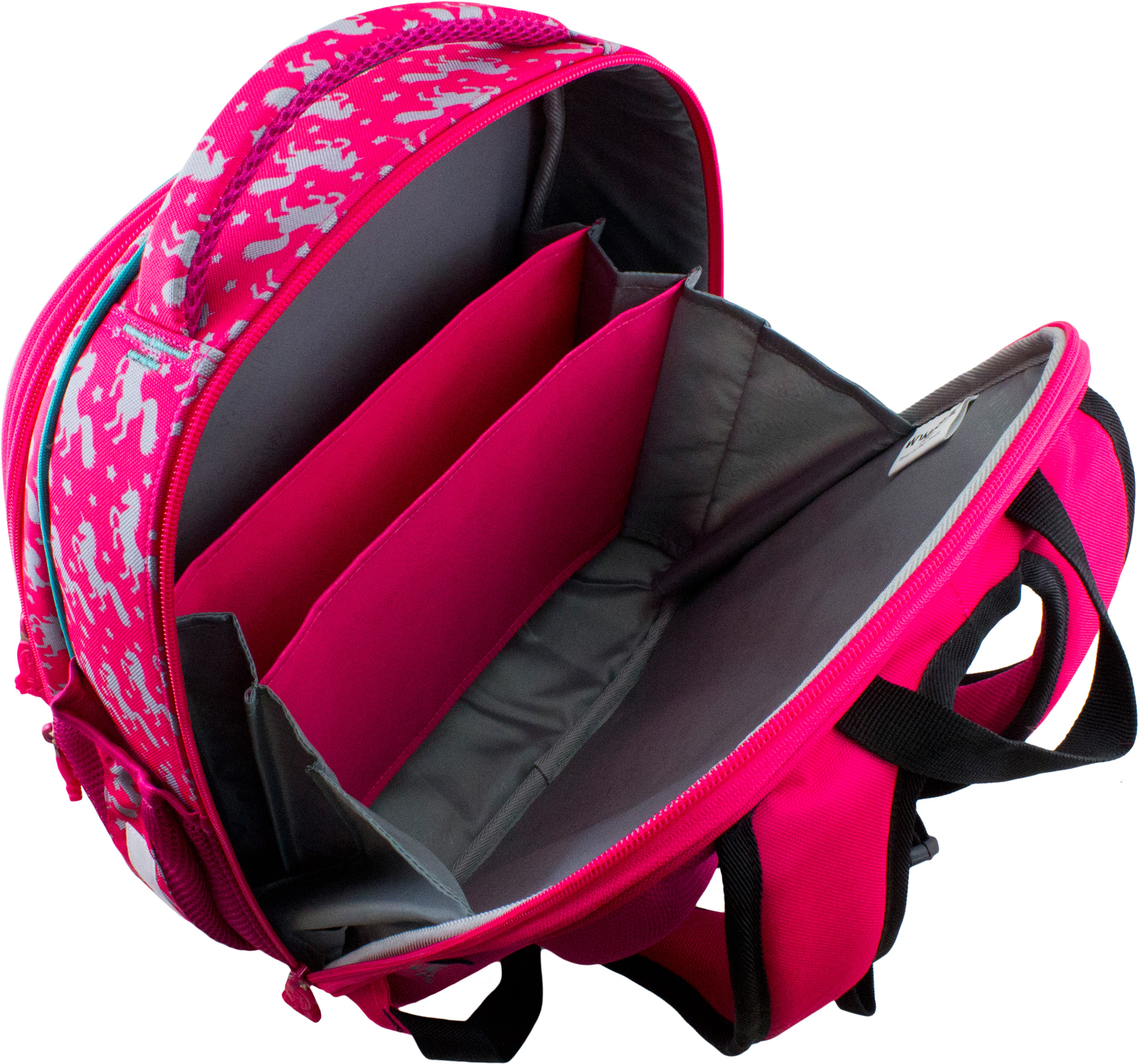 Облегченный каркас ранца изготовлен по жестко-каркасной технологии, что обеспечивает правильную эргономичную форму. Каркас не деформируется при нагрузке и распределяет вес по всей площади ранца.