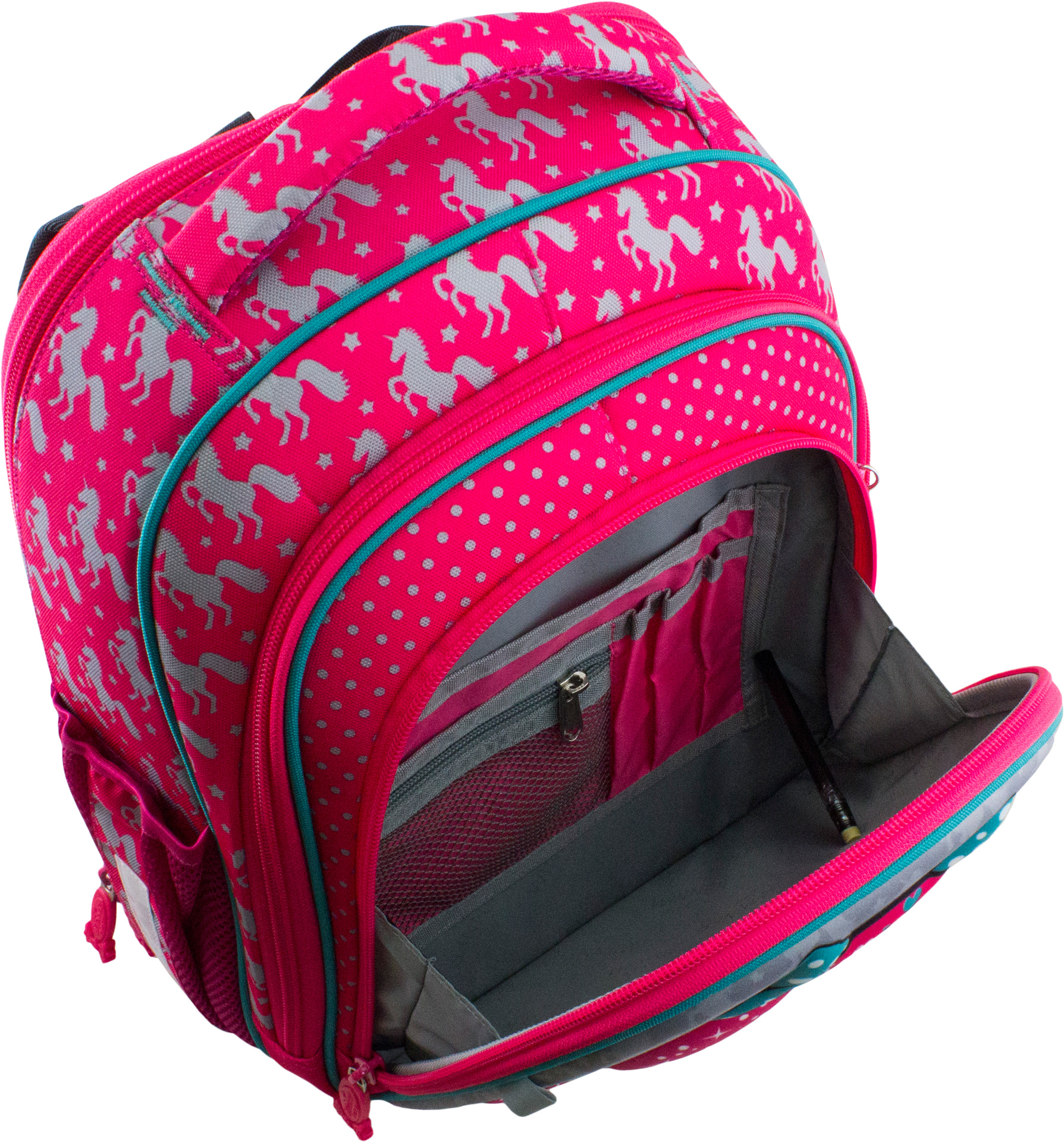 Основное большое отделение у спины, с тканевыми разделителями, для школьных принадлежностей.