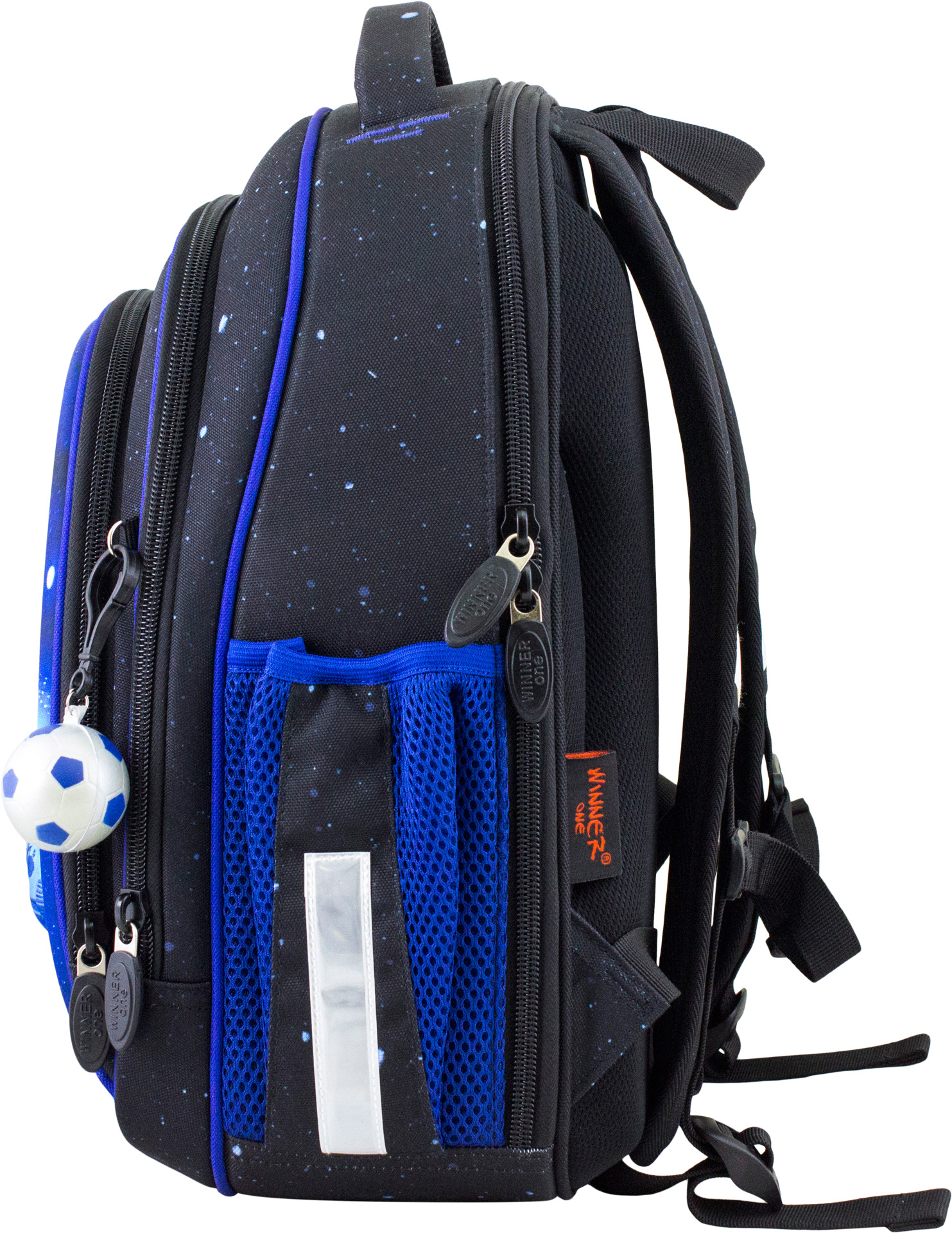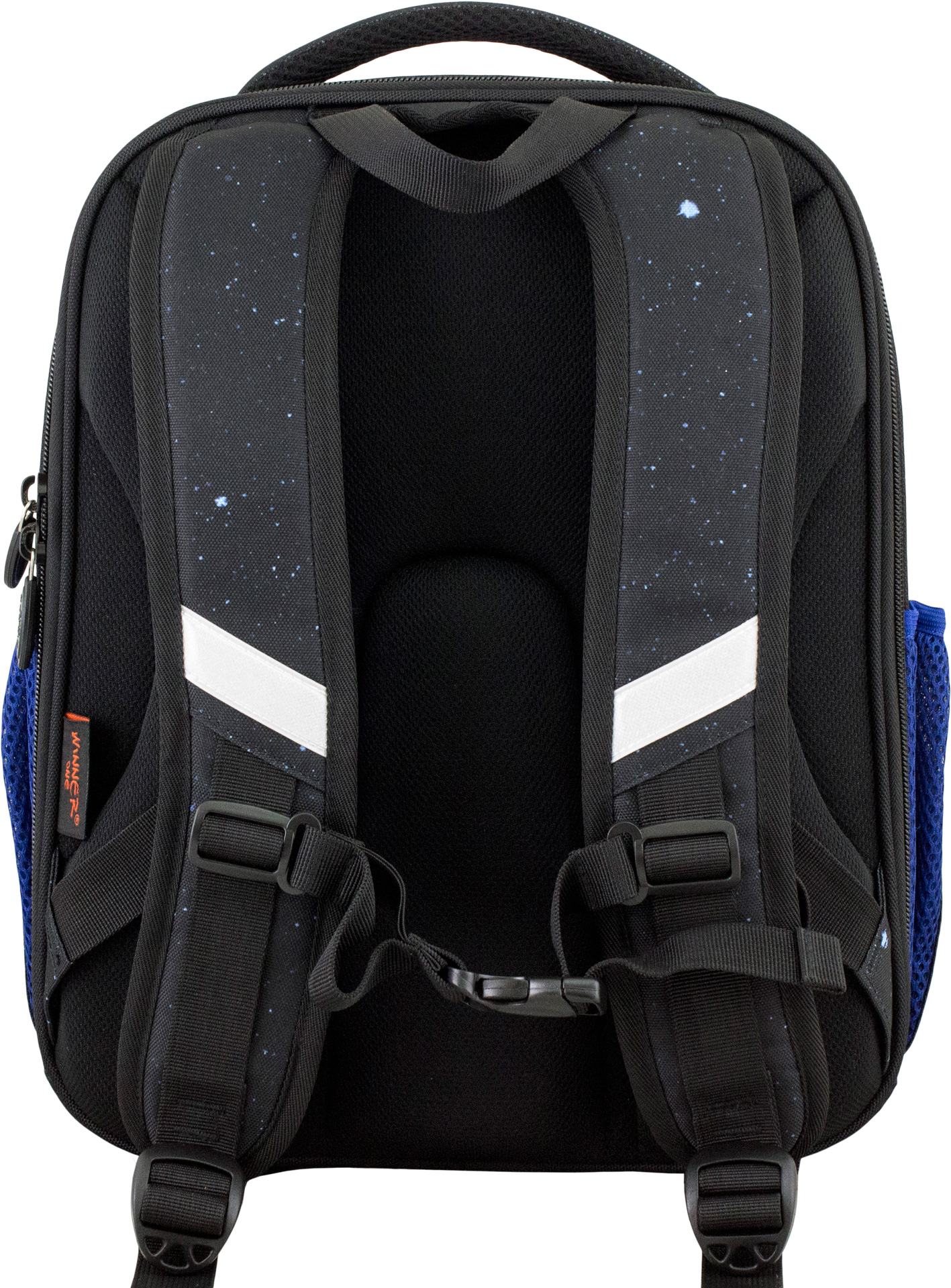 Светоотражающие элементы расположены на передней, задней и боковой частях ранца, для обеспечения безопасности в темное время суток.