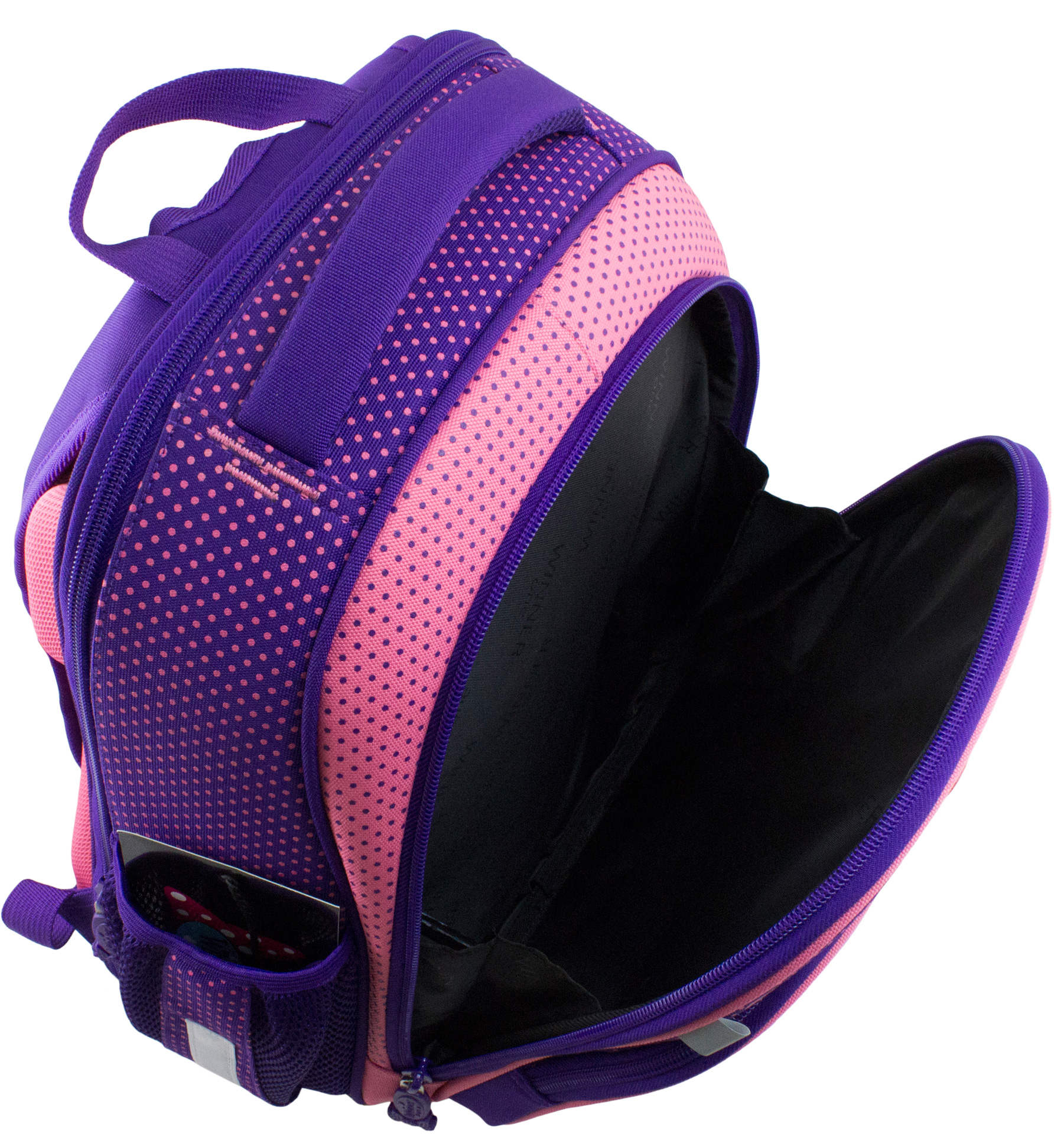 Светоотражающие элементы расположены на передней, задней и боковой частях ранца, для обеспечения безопасности в темное время суток.