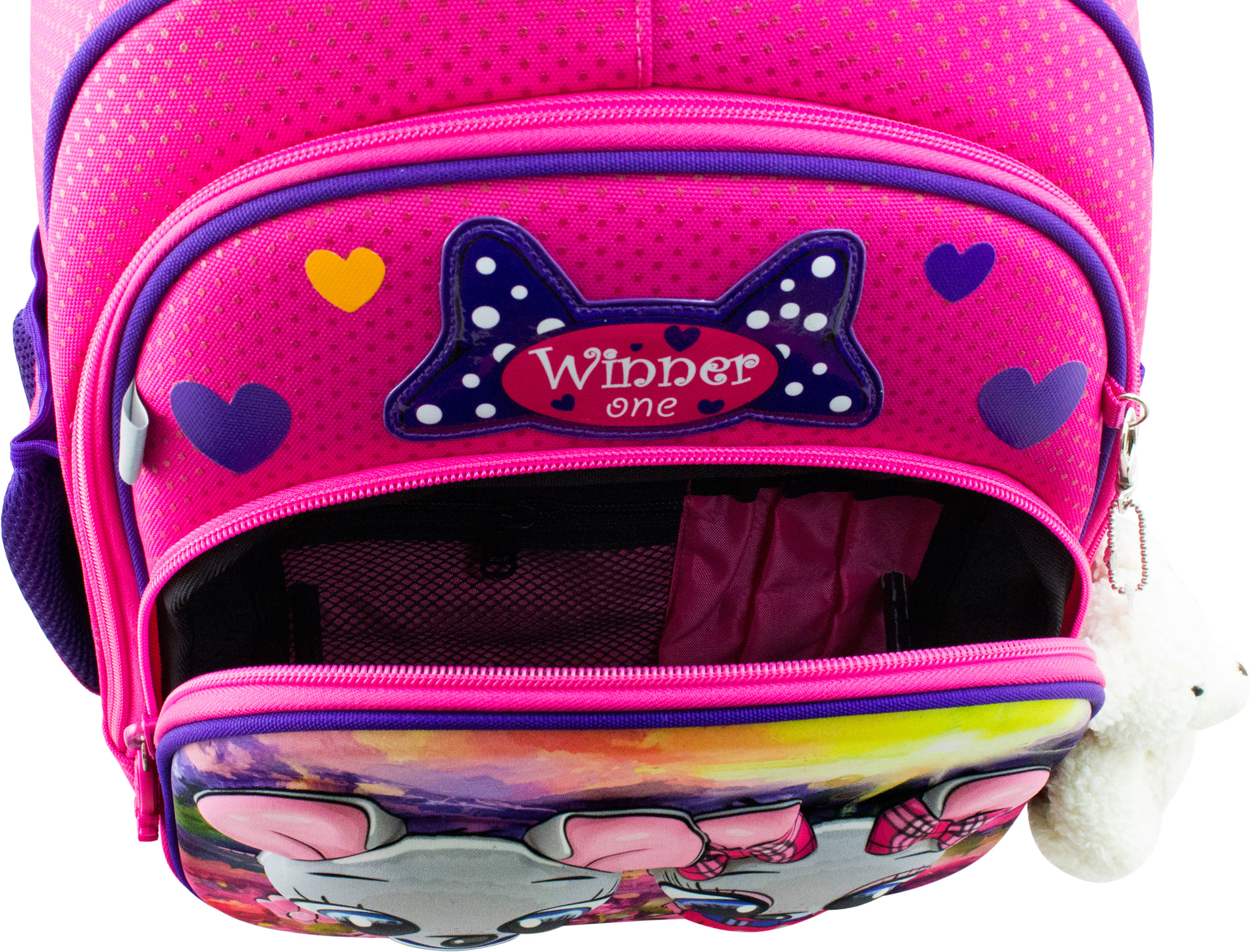 Впереди карман с 3D рисунком, в котором находится органайзер для письменных принадлежностей.