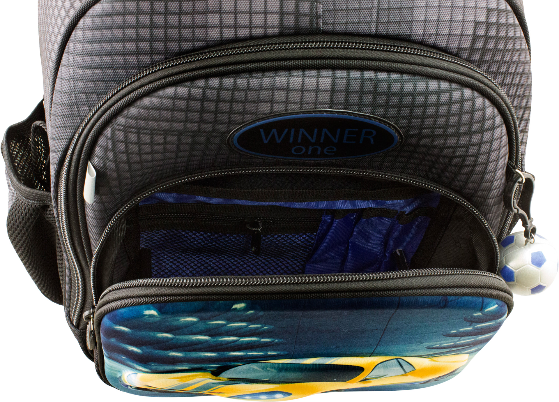 Впереди карман с 3D рисунком, в котором находится органайзер для письменных принадлежностей.