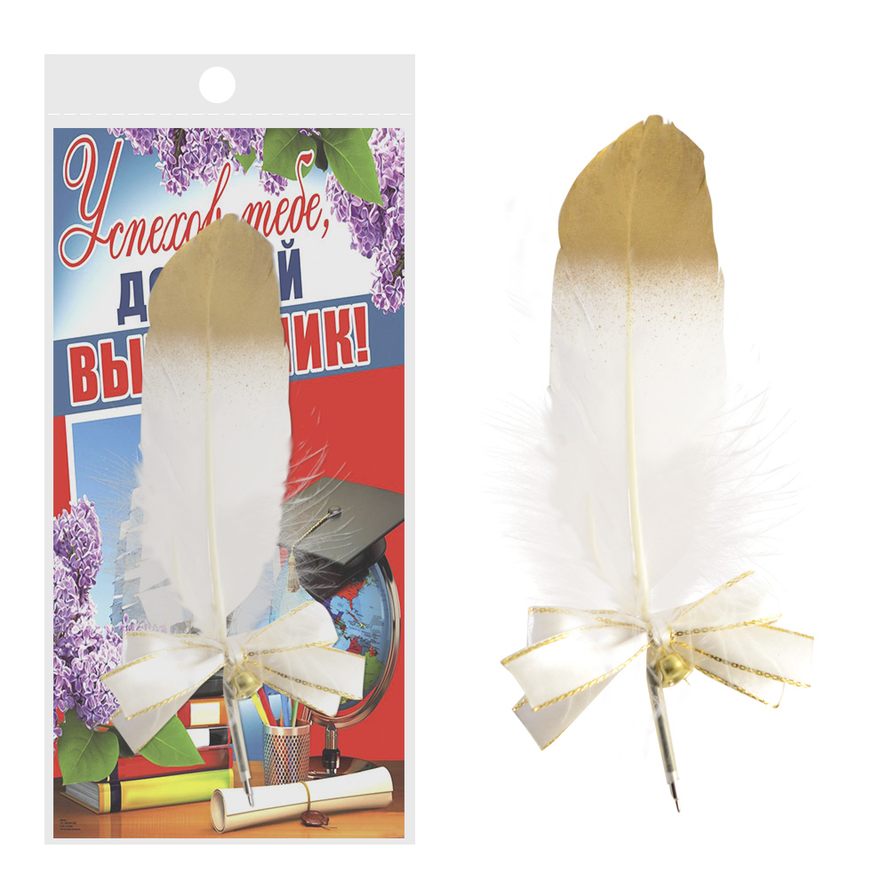 Ручка в виде пера с открыткой станет прекрасным сувенирным подарком.