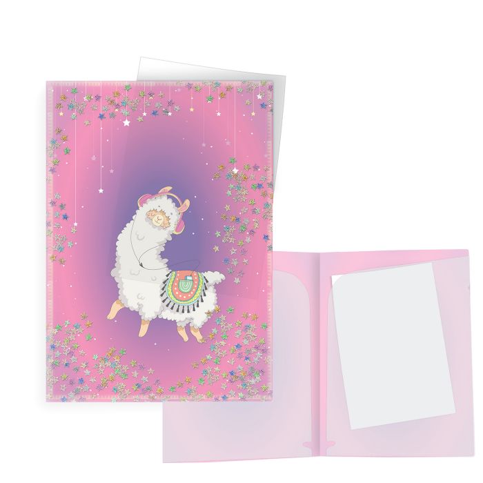 Папка для документов, рефератов и рисунков пластиковая формат А4, с 1 отделением и внутренними уголками, украшена пайетками.