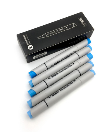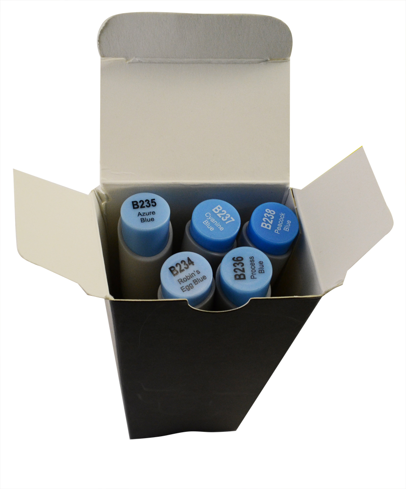 Скетч-маркеры KELLCOLOR, "Голубые" B234, B235, B236, B237, B238, 5 штук, двусторонние, скошенный+острый наконечник TLC-18