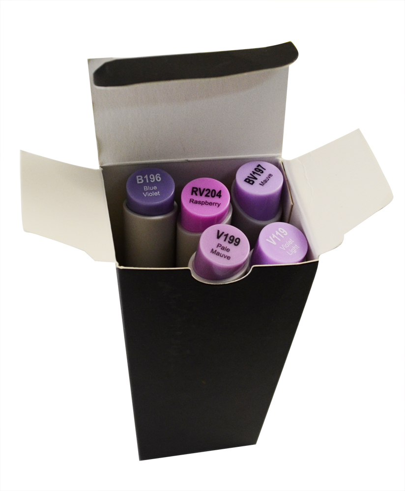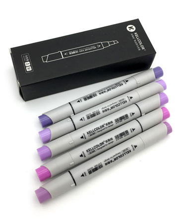 Скетч-маркеры KELLCOLOR, "Розово-фиолетовые" V119, B196, V199, BV197, RV204, 5 штук, двусторонние, скошенный+острый наконечник TLC-20