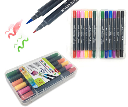 Скетч - Фломастеры BRUSH 12 цветов CD-1307 АКВАРЕЛЬНЫЕ Двусторонние в ПВХ коробке*