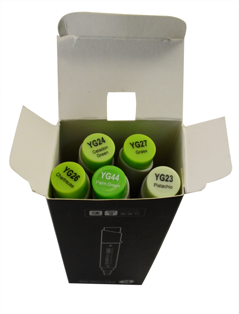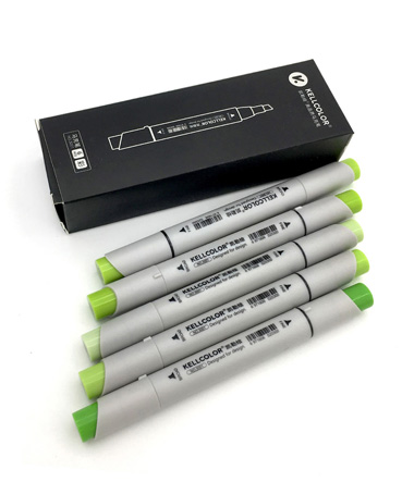 Скетч-маркеры KELLCOLOR, "Зеленые" YG23, YG24, YG26, YG27, YG44, 5 штук, двусторонние, скошенный+острый наконечник TLC-19*