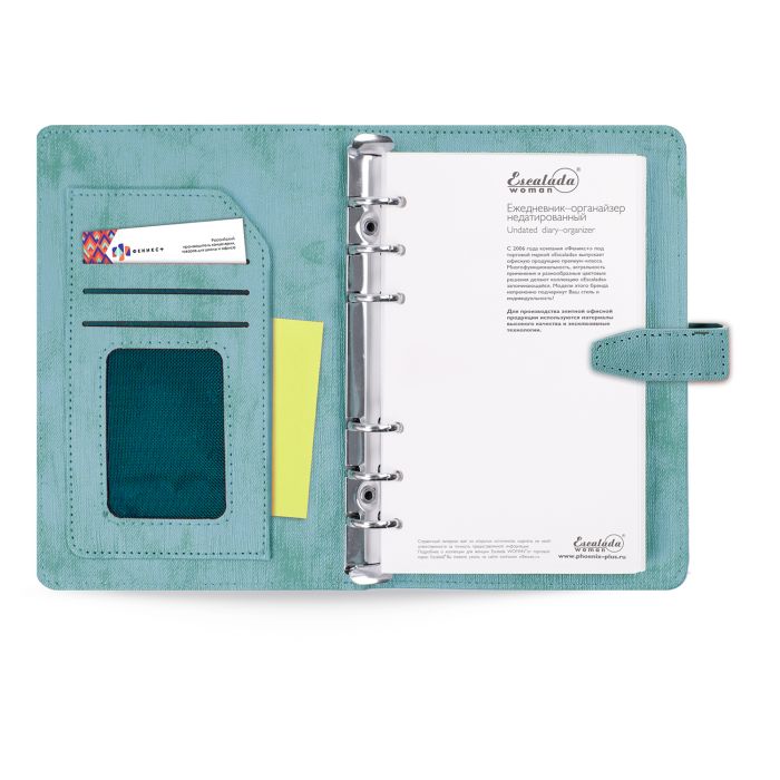 Ежедневник-органайзер недатированный, А6+, 160 листов, "Павлин голубой" твёрдый переплёт, искусственная кожа*