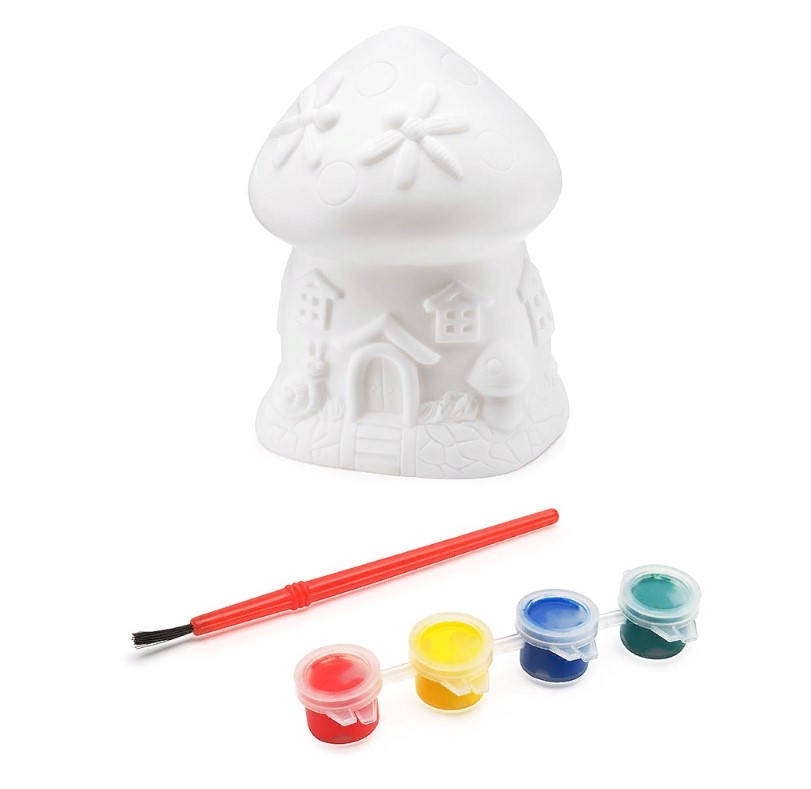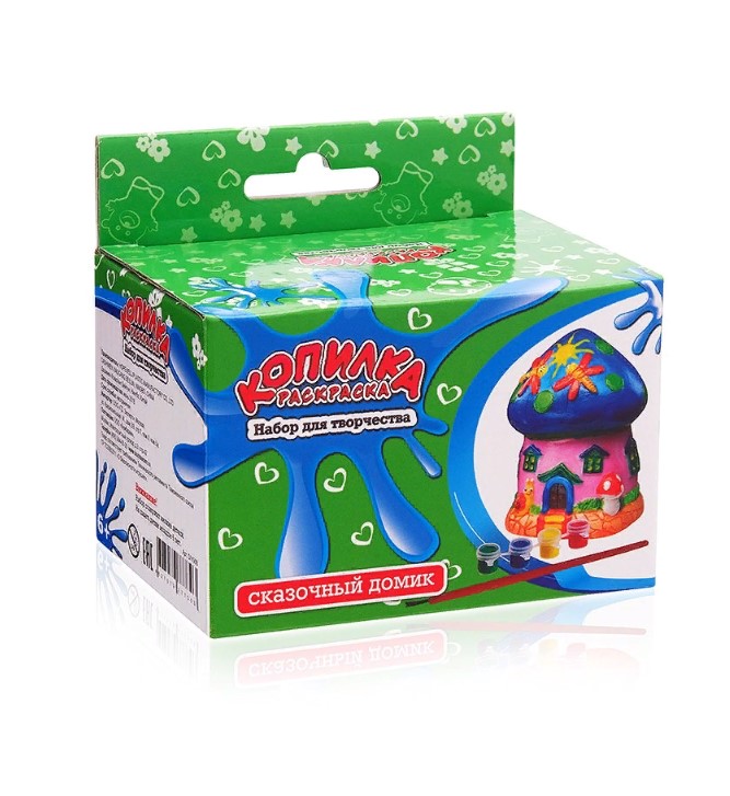 В комплекте: белая копилка, краски 4 цветов, кисточка