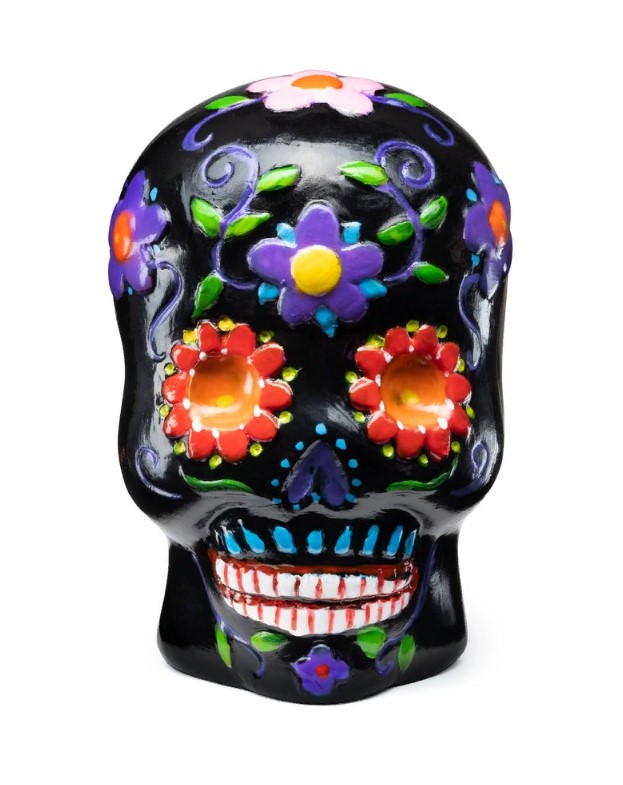 Эта экзотическая копилка напомнит о мексиканских традициях и праздниках. Распишите череп в духе мистических масок и статуэток ко Дню Мертвых. У вас получится яркий и небанальный сувенир, который к тому же станет удобным хранилищем для мелких монет.