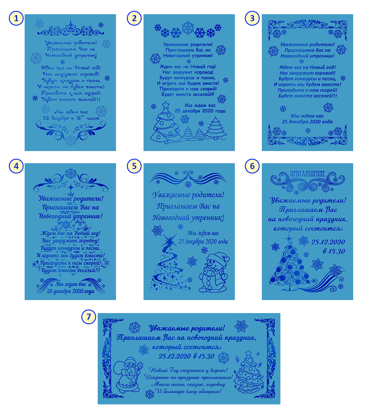 Цвет пригласительного и цвет нанесения текста на Ваш выбор, например в цвет выпускных лент. (При заказе указать номер дизайна пригласительного)